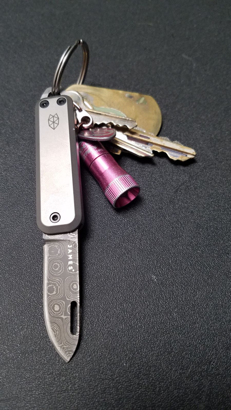Damascus finish is gorgeous and it does fit well on my keychain. I am knocking off one star though because, as other reviews mention, the blade on this knife was NOT sharp, in fact noticeably dull. For a more expensive knife like this, I should not ever have had to sharpen it myself right after purchase, and have not, in fact, with other brands. But once properly sharpened it works well.